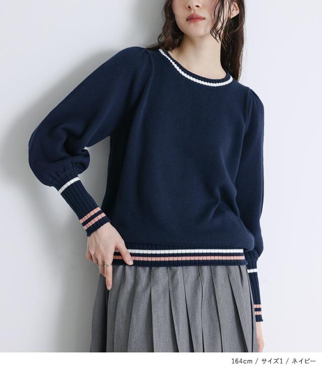 ニット レディース トップス セーター 長袖 クルーネック 配色 ライン 綿混 パフスリーブ ロングリブ 春 秋 冬 【TP】 プルオーバー ざっくりニット ホワイト 白 アイボリー ショート丈 ミディ丈 ミドル丈 ライン柄 無地 コットン混 レイヤード 重ね着 おうちで洗える カジュアル レトロ クラシカル シンプル ナチュラル キレカジ フェミニン ガーリー Sサイズ Mサイズ Lサイズ LLサイズ 3Lサイズ XLサイズ ぽっちゃり 体型カバー 大きいサイズ プラスサイズ 10代 20代 30代 40代 50代 60代 女子会 オフィス 通勤 通学 お買い物 お出掛け 旅行 リゾート レジャー おしゃれ お洒落 トレンド 流行 somari imagination ソマリイマジネーション 可愛い系 大人女子 大人可愛い お洒落可愛い 大人カジュアル 上品 きれいめ osharewalker オシャレウォーカー おしゃれうぉーかー ネイビー 紺[ID]11tn01m