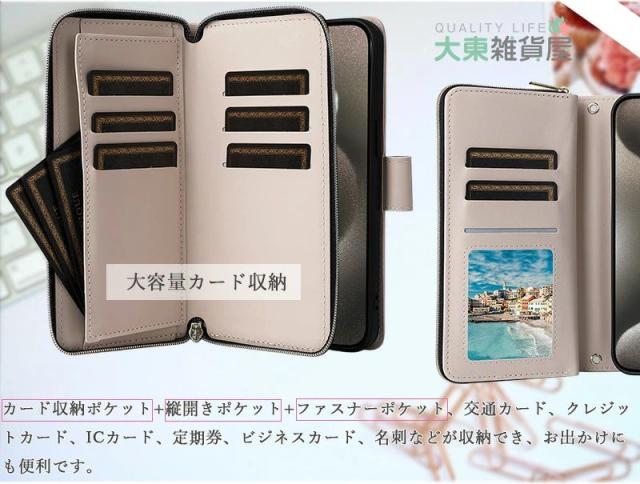 ?カード収納ポケット+縦開きポケット+ファスナー式ポケット、交通カード、クレジットカード、ICカード、定期券、ビジネスカード、名刺などが収納でき、お出かけにも便利です。