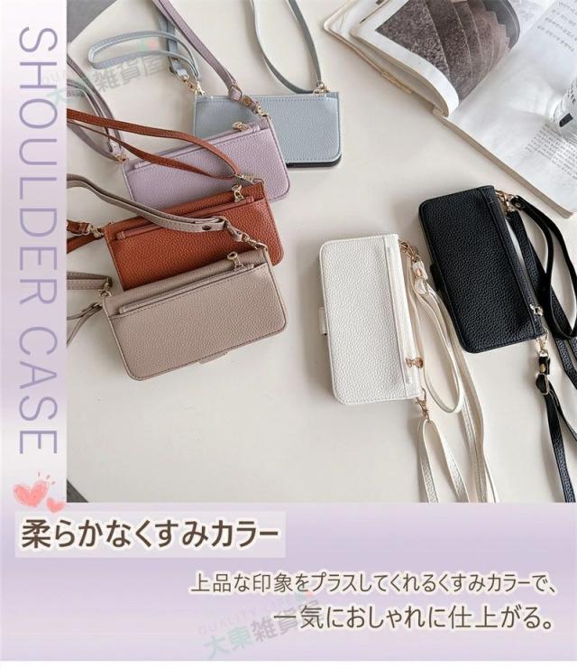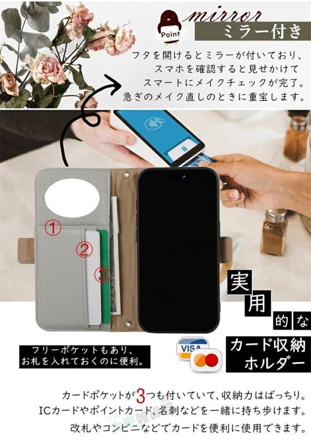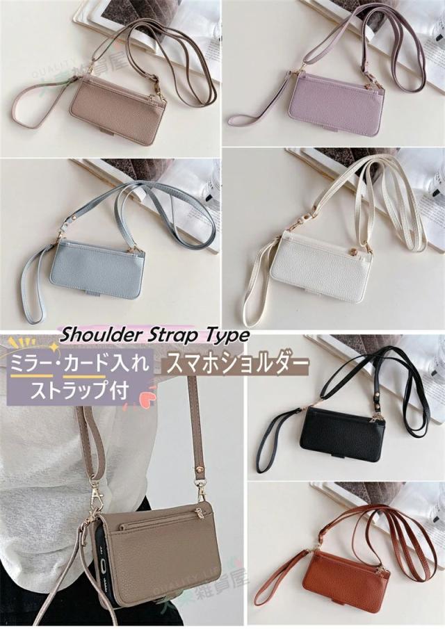 スマホショルダーケース iPhone16 iPhone15 iPhone14 plus iPhoneSE3 iPhone13mini iPhone12mini iPhone11 Pro Max スマホケース 鏡 カード収納 ストラップ付き 財布一体型 手帳型 耐衝撃