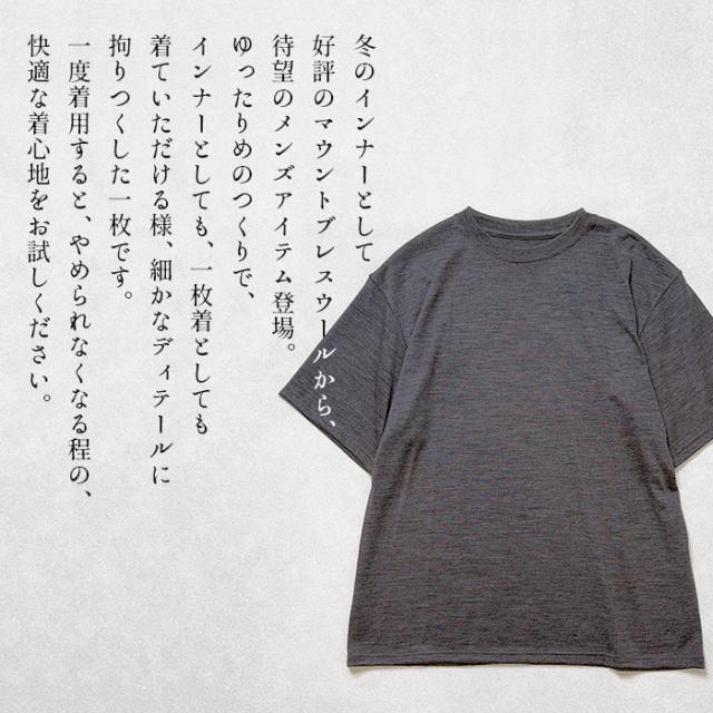 呼吸する ウール100% メンズ 半袖 Tシャツ 日本製 / メリノウール インナー メンズ Tシャツ 登山 冬 40代 50代 60代 30代 薄手 男性 ウール 毛100% アウトドア スポーツ マウントブレスウール 機能性インナー クルーネック 丸首 肌着 速乾 抗菌 防寒