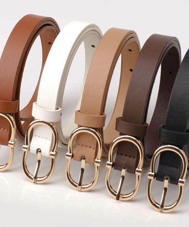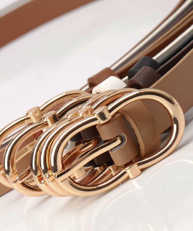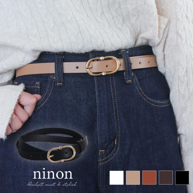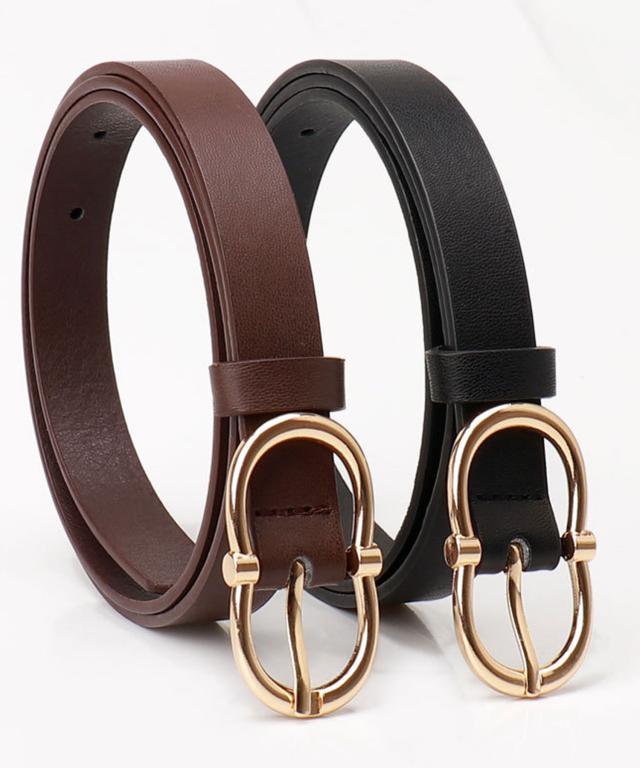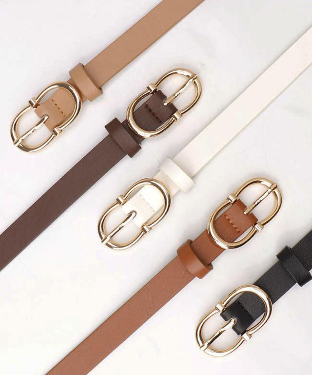 【スラっと見せる大人かわいい上品ゴールドバックルベルト/カジュアルベルト】
