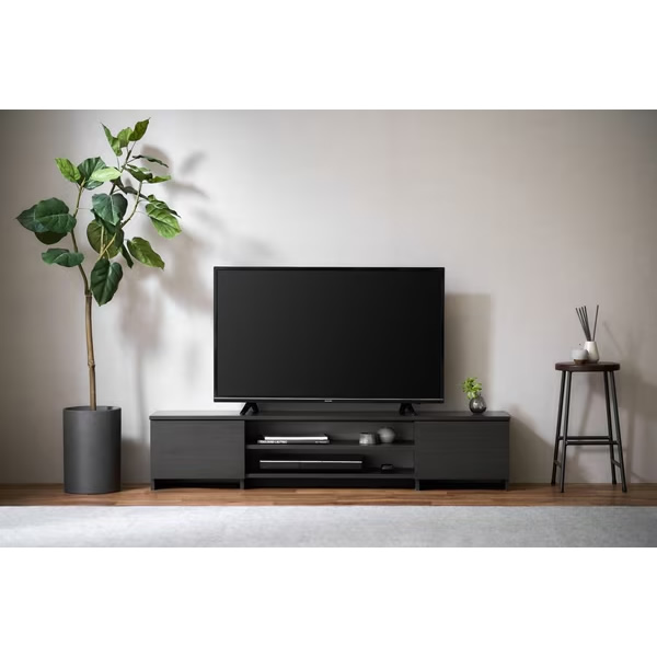 ■60型TVまで対応 ■商品サイズ(cm) 幅約150×奥行約29.6×高さ約31.1 ■商品質量 約18.1kg ■耐荷重 天板:40kg 底板:10kg 可動棚板:5kg 扉収納(1個あたり):約3kg 全体:61kg ■主要材質 木質部分 プリント紙化粧パーティクルボード、プリント紙化粧繊維板 金属部分 金属(鋼)(エポキシ樹脂塗装) ■組立 お客様組立品 ■必要工具 +ドライバー(サイズ:2番)握り部分の直径30mm以上 電動ドライバーの使用可 ※インパクトドライバーは使用しないでください。 ■カラー ブラックオーク ※お客様組立て品につきましては、組み立て後に不良の連絡をされても対応ができません。 組み立て前にパーツに不良・傷等がないか、必ずご確認下さいますようよろしくお願い申し上げます。 ※記載は商品仕様の一部です。仕様説明不足等の理由での返品はできません。特に適合等は必ずご確認ください。