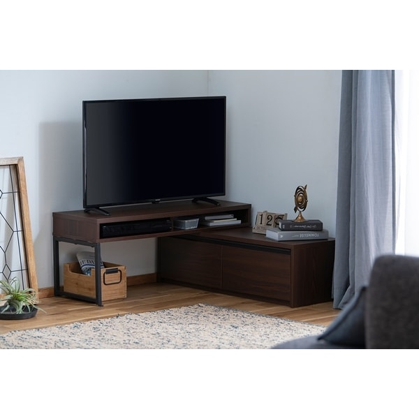 アイリスオーヤマ 伸縮テレビ台 STS-100U-WN ウォールナット テレビ台 ローボード 収納 コーナー 引出し付き テレビボード TVボード