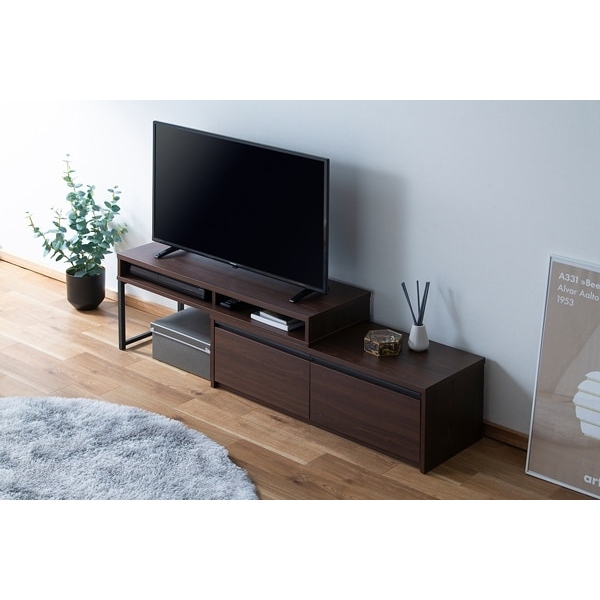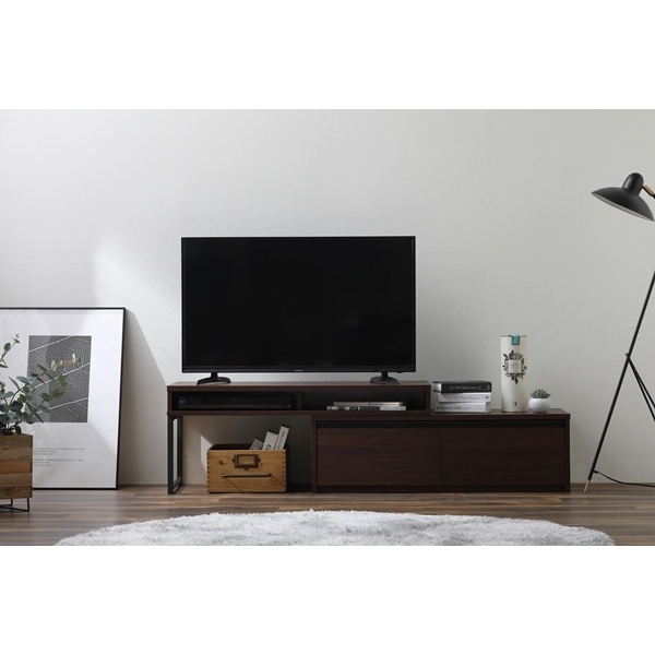 お部屋に合わせてレイアウト自由自在。 空間に合わせて、幅も角度も思いのまま。 伸縮タイプのテレビ台です。 ■商品サイズ(cm) 外寸:幅約100.0〜177.7×奥行約35.0×高さ約41.0 本体:幅約97.7×奥行約34.7×高さ約29.6 可動部:幅約100.0×奥行約35.0×高さ約41.0 引き出し内寸:幅約41.1×奥行約28.6×高さ約12.5 ■耐荷重 本体天板:30kg 可動部天板:20kg 可動部棚板(左右):各5kg 引き出し(左右):各4g 全体:68kg ■主要材質 木製部分:プリント紙化粧パーティクルボード、プリント紙化粧繊維板 側パイプ、取っ手:スチール(エポキシ樹脂塗装) ■組立 お客様組立品 ※耐荷重は測定値であり、保証値ではありません ※必要工具:+ドライバー(サイズ2番) ※2人での組み立てをおすすめします ※お客様組立て品につきましては、組み立て後に不良の連絡をされても対応ができません。 組み立て前にパーツに不良・傷等がないか、必ずご確認下さいますようよろしくお願い申し上げます。 ※記載は商品仕様の一部です。仕様説明不足等の理由での返品はできません。特に適合等は必ずご確認ください。
