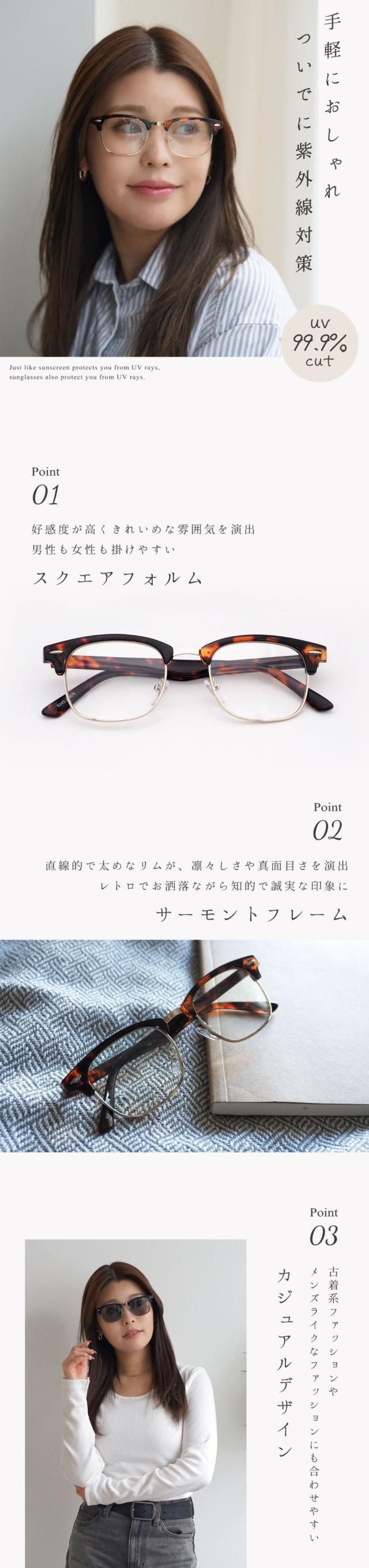 サングラス 伊達メガネ レディース おしゃれ uvカット 紫外線カット 鯖江企画 サーモント ブロー スクエア かわいい 専用ケース付き GG eyewear 5045
