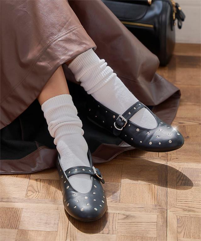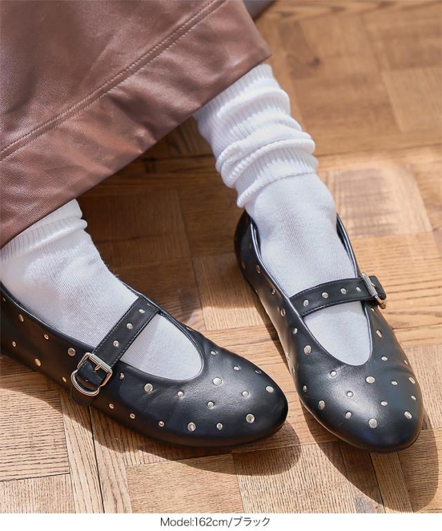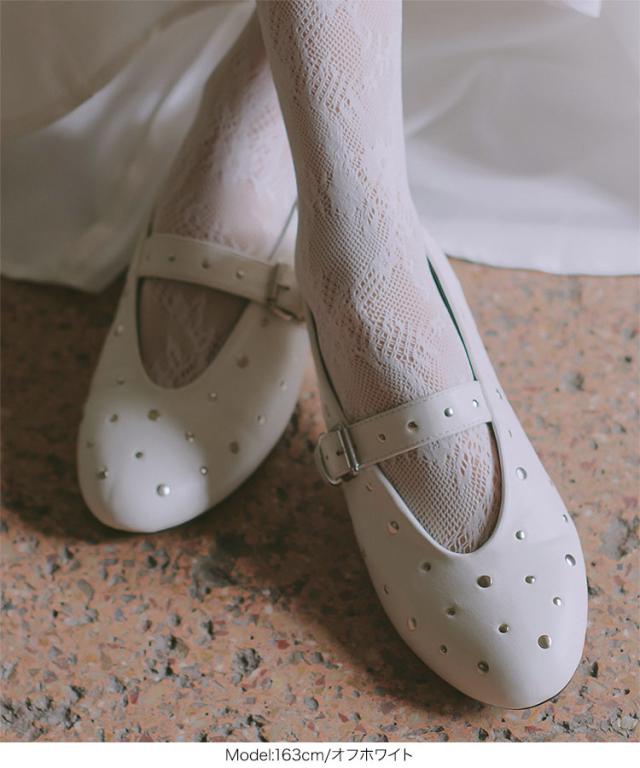 春新作 リベットメリージェーン I2643 入荷済 レディース 20代 30代 40代 バレリーナシューズ バレエシューズ ブラック オフホワイト 白 黒 靴 フラットシューズ ストラップシューズ メリージェーン S M L ラウンドトゥ ラインストーン