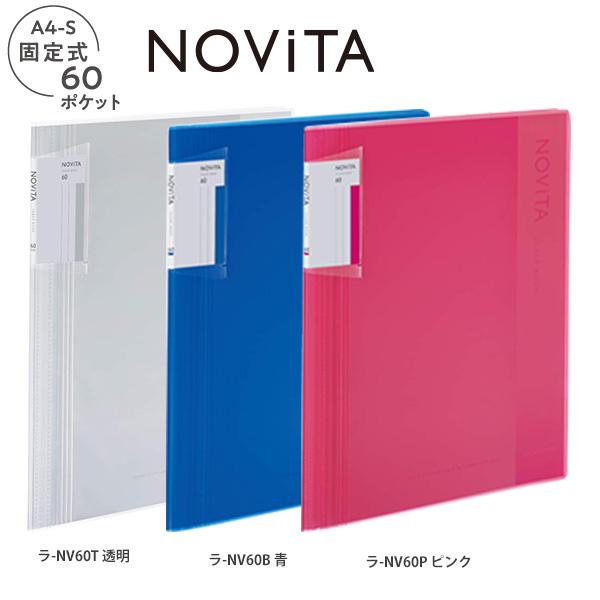 コクヨ クリヤーブック NOViTA ノビータ 固定式 A4Sサイズ 60ポケット 背幅が約5倍広がる 600枚収納可能 ラ-NV60 -T 透明 / -B 青 / -P ピンク
