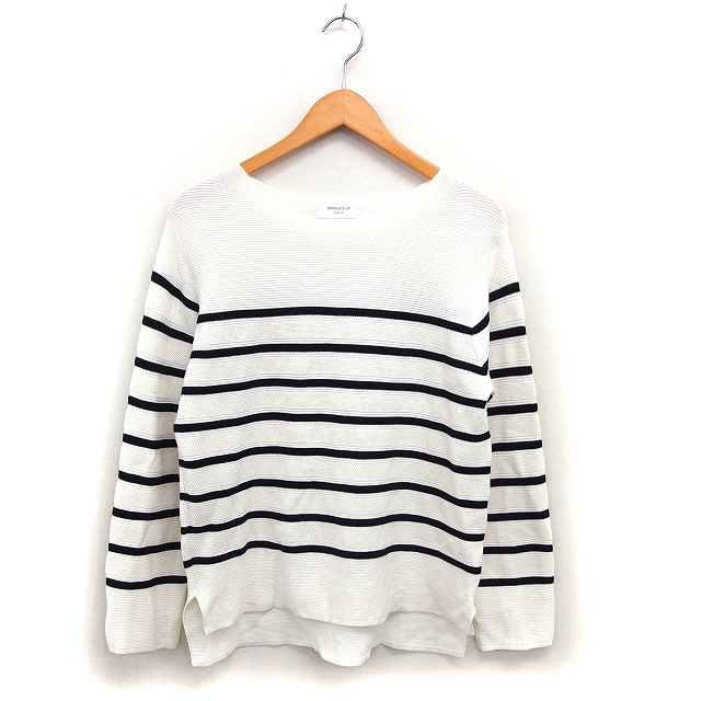 【中古】オペークドットクリップ OPAQUE.CLIP ニット カットソー ロングテール ボーダー コットン リブ ボートネック