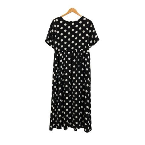 【中古】ココモモ COCOMOMO ロングワンピース 半袖 クルーネック M 黒 ブラック 白 ホワイト レディース