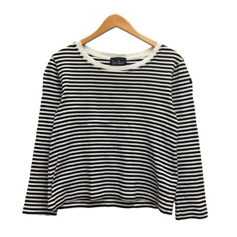 【中古】ルミノア Leminor カットソー 長袖 クルーネック ボーダー コットン 18-070-913-0043-1-0 黒 ブラック 白 ホワイト レディース