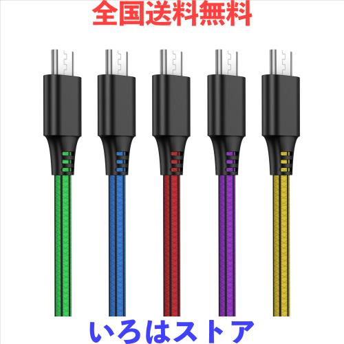 Micro USB ケーブル 【5本セット 2m】 急速充電 高速データ転送 2.4A 断線防止 Xperia Fujitsu Arrows Galaxy などAndroidスマホ対応 マ