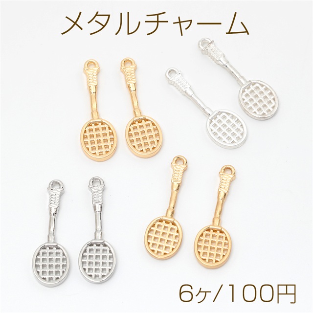 メタルチャーム バドミントンラケット 合金製 約8.5×26mm(6ヶ)