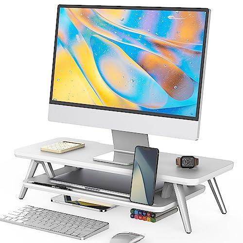 ・収納プラス・デスク上をすっきり:モニター台2段式で上段はスマホやタブレットやノートなどをすっきりに収納できます。 下段の空間を活用して、キーボード、マウスなどの周辺機器を整理し、デスクを広くご利用いただけます。
