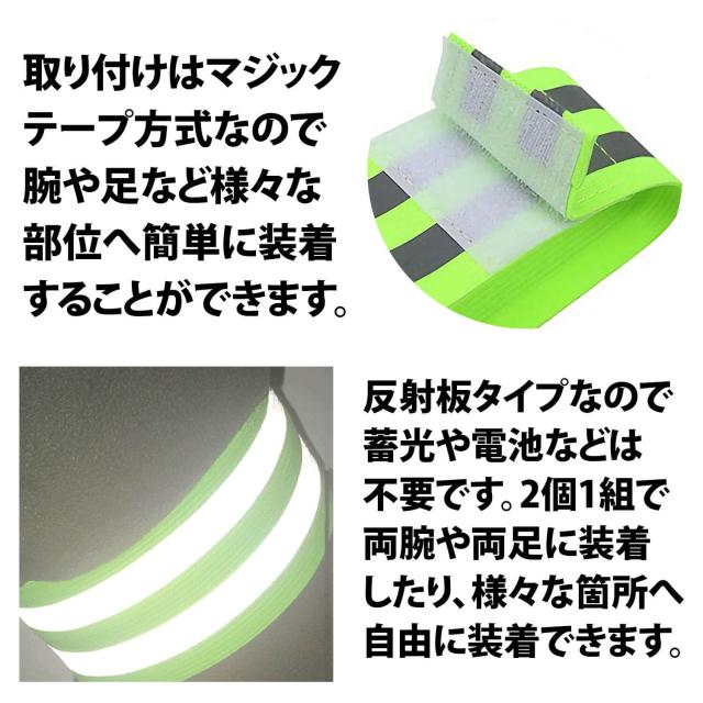 50%offクーポン有 反射アームバンド 2個セット 反射板 蛍光 夜間 安全 伸縮 リストバンド マジックテープ ベルクロテープ 反射 バンド ランニング ウォーキング 腕 アーム 足首 通勤 交通 工事 現場 ライト 自動車 自転車 車 防犯 子供 散歩 釣り ペット リフレクター