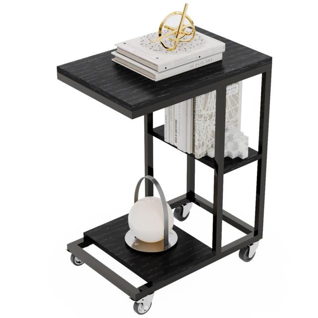 ◆商品名:ZXD サイドテーブル キャスター付きコの字型デザイン ベッド リビングサイドテーブル ソファサイドテーブル おりたたみサイド ブラックエ