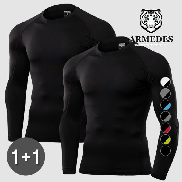 2枚セット 送料無料 ARMEDES アルメデス コンプレッション インナー アンダーウェア Tシャツ 接触冷感 長袖 丸首 日常 トレーニングウェア ランニング フィットネス メンズ M-2XL 全7色 オールシーズン AR56