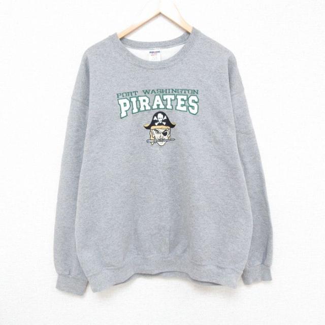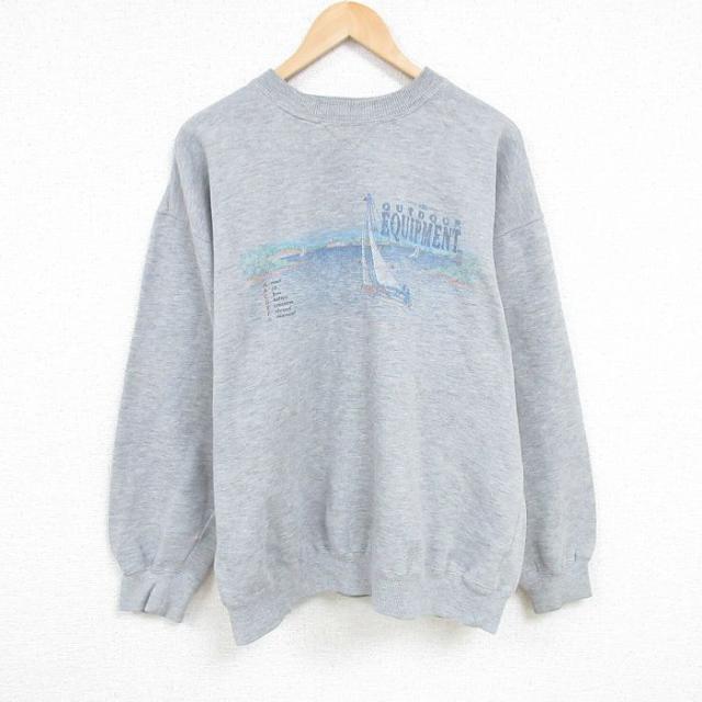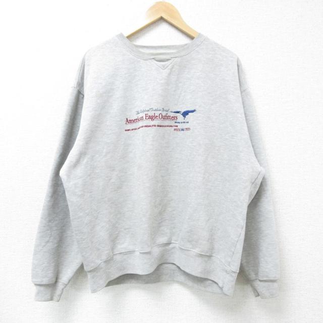 古着 アメリカンイーグル American Eagle 長袖 スウェット メンズ 00年代 00s ビッグロゴ 刺繍 クルーネック グレー 霜降り XL 中古 古着