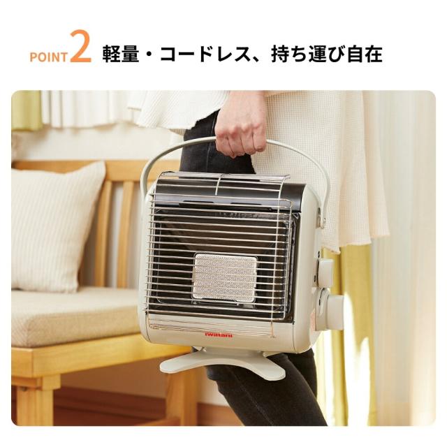 小さく軽量なので、置き場所にスペースを取ることもなく、女性でもどこでも簡単に暖がとれます。