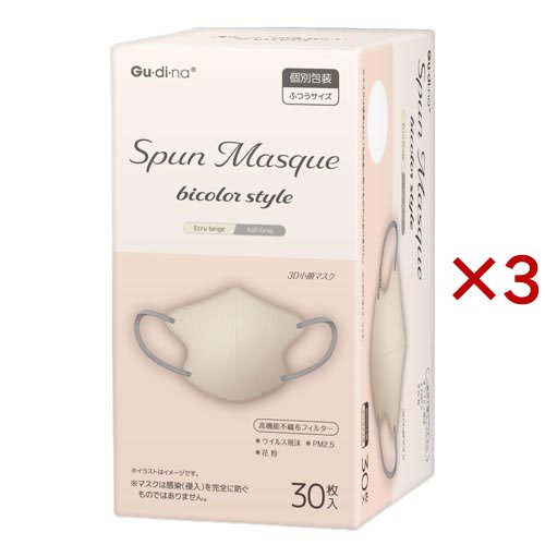 グディナ スパンレース不織布立体マスクエクルベージュ(30枚×3セット)[立体マスク]