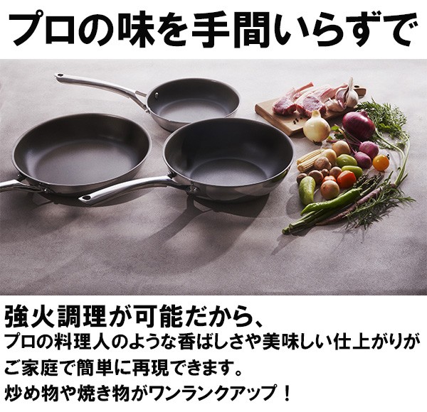 | 仕様 | 強火調理、空焚き、金属ベラ使用、金だわし使用、食洗器使用、高温状態で水につける、塩分含んだ調理物の長時間保存などが問題なく行っていただけます。 |