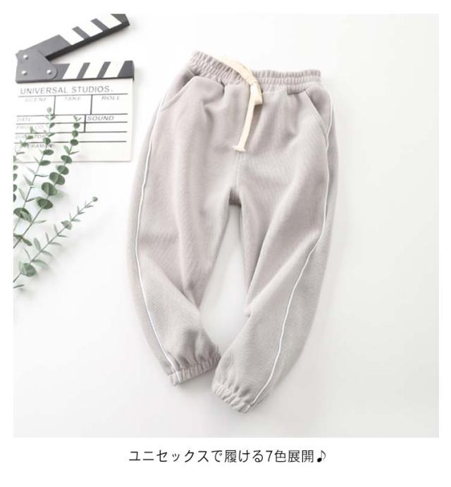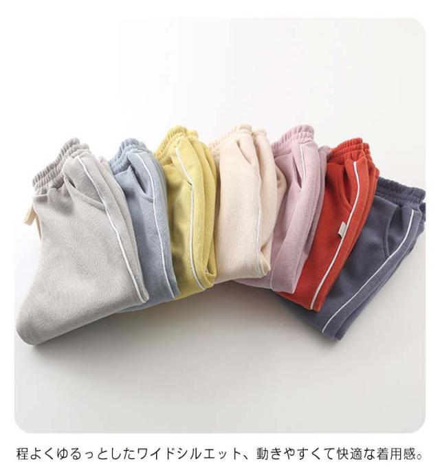 | 穿きやすいキッズスウェットパンツ 通園・通学からお出かけまで幅広いシーンで着こなしやすいアイテム。 程よくゆるっとしたワイドシルエット、動きやすくて快適な着用感。 ウエスト部分は着脱ラクラクで着心地も快適なゴムタイプ。 ユニセックスで履ける7色展開♪ 程よい厚み、ロングシーズンで大活躍する1着。 日常使いはもちろん、ダンスやスポーツ時の運動着として、ご自宅や宿泊時のパジャマとしても最適です! 100から140までの幅広いサイズ展開でご用意しておりますので、ご家族や兄妹、お友だちとのお揃いもお楽しみいただけます♪ | |