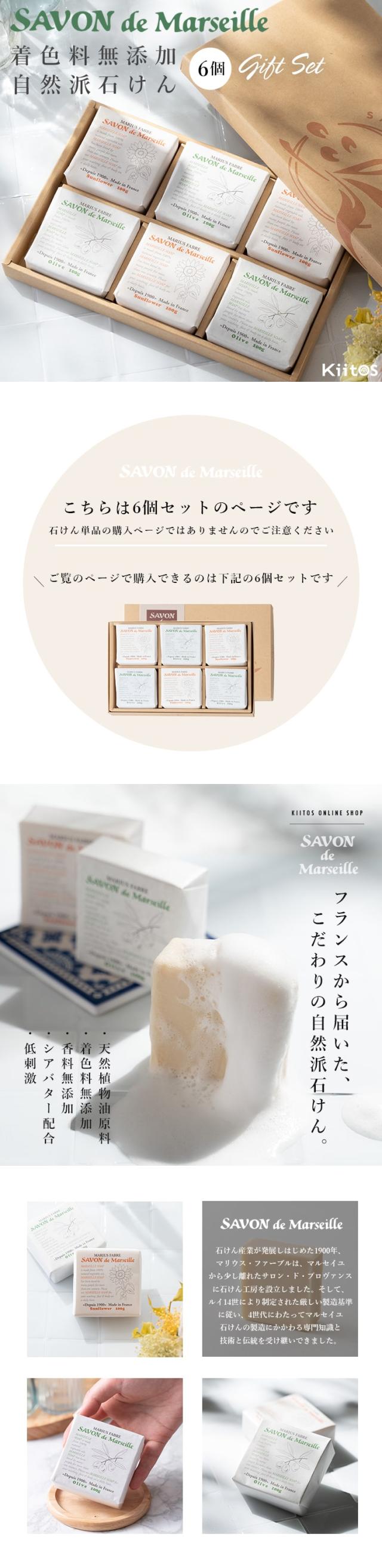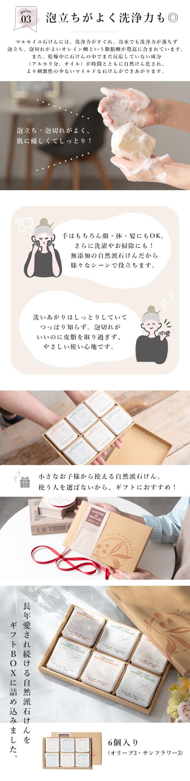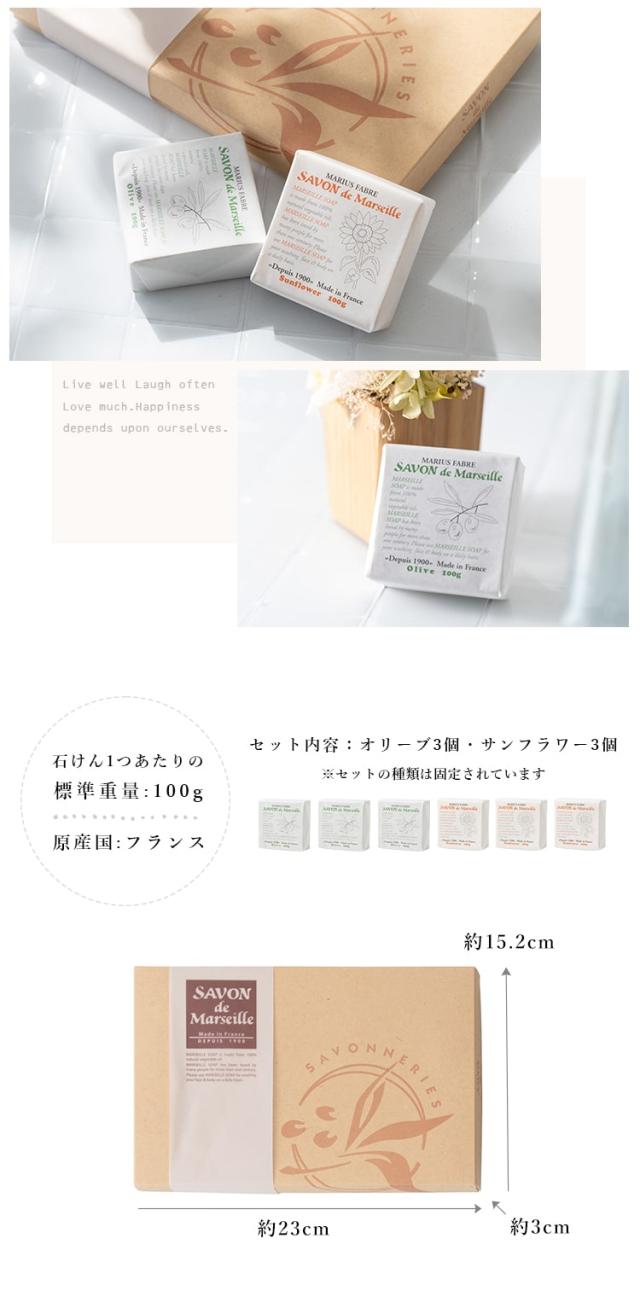 石鹸 サボンドマルセイユ 石けん ギフトセット 6個入り バレンタイン フランス せっけん サンフラワー オリーブ 天然 デリケート 化粧 肌 洗顔 さっぱり しっとり なめらか 植物 油 箱入り プレゼント