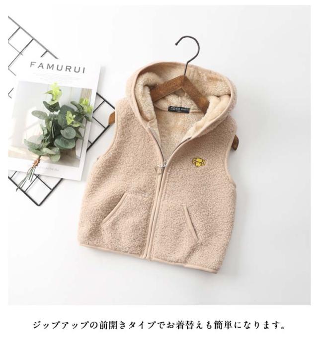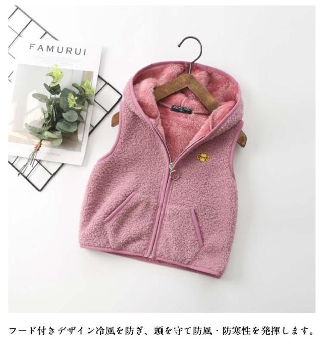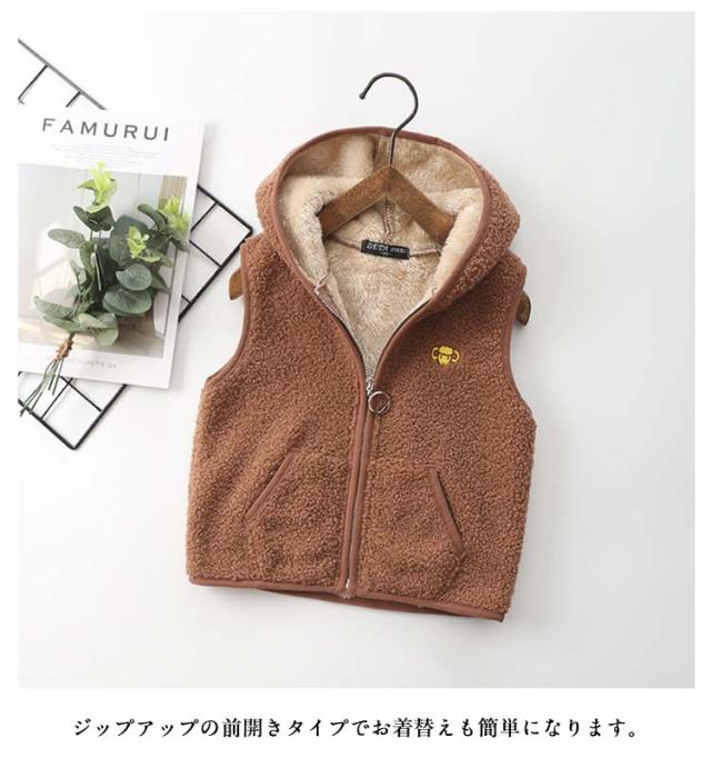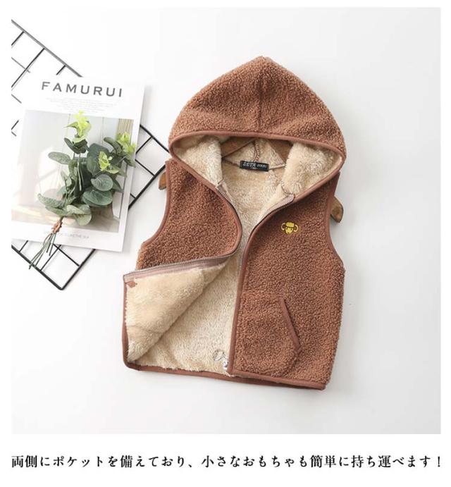 通学 もこもこ 暖かい 子供用 フード付きベスト 防寒 チョッキ ジレ フード付きベスト キッズ ボアベスト シンプル お洒落 ジップアップ トップス 可愛い 男の子 女の子 キッズ服 通学 前開き 軽量 あったか 重ね着 防寒着 冷え対策 かわいい ギフト