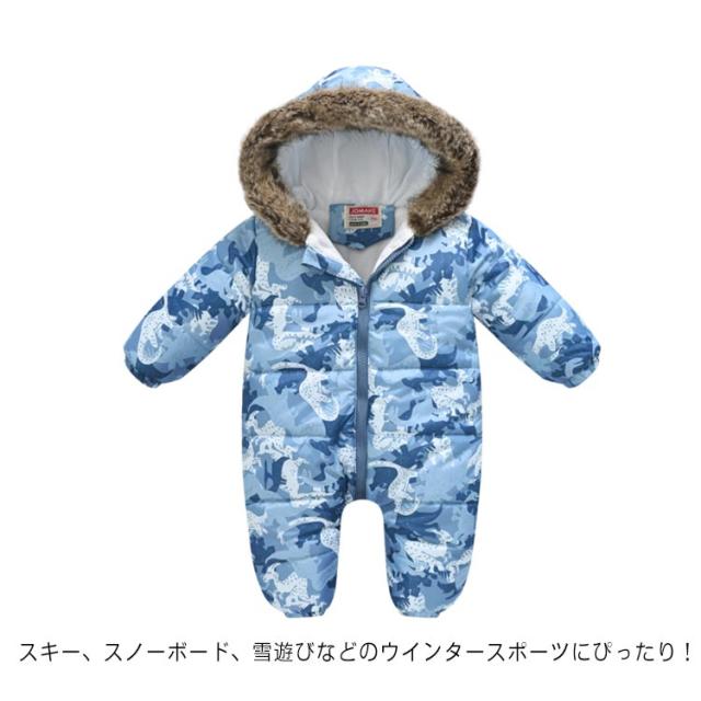 ベビー用 防風 防寒 カバーオール キッズ 男の子 女の子 スキーウェア オールインワン ロンパース かわいい 中綿 暖かい ジャンプスーツ アウター スノーボードウェア 子供服 着ぐるみ スキーウェア 撥水 ジャケット あったか 雪遊び 迷彩 おしゃれ 冬 アウトドア ギフト