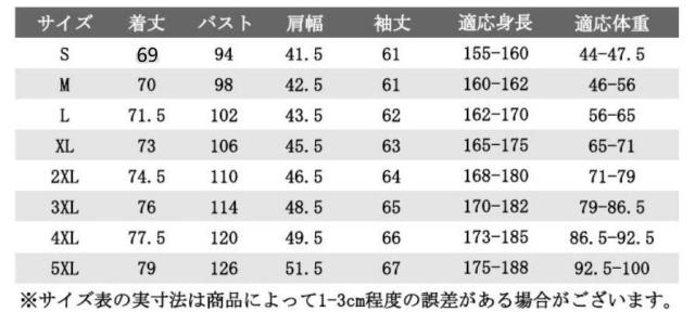 | サイズ | S M L XL 2XL 3XL 4XL 5XL |