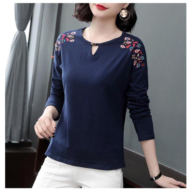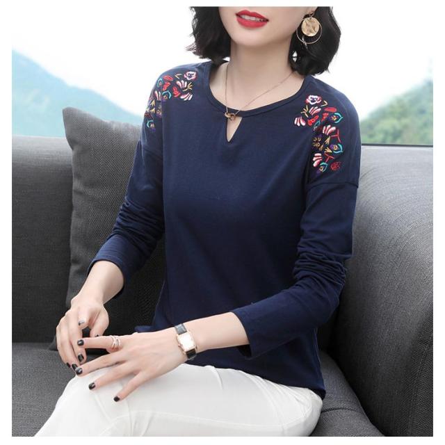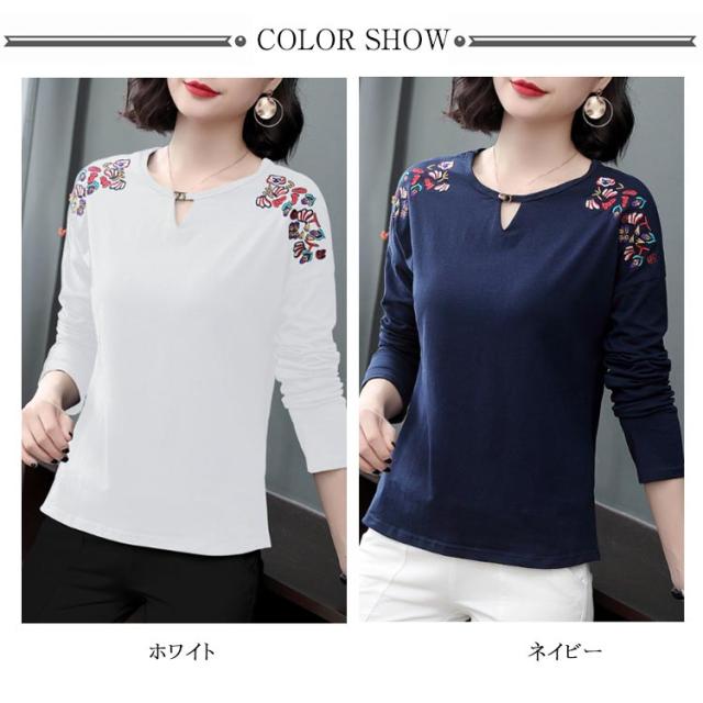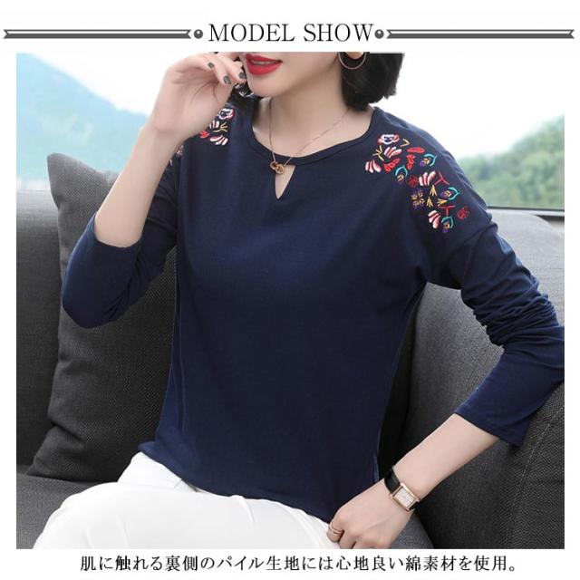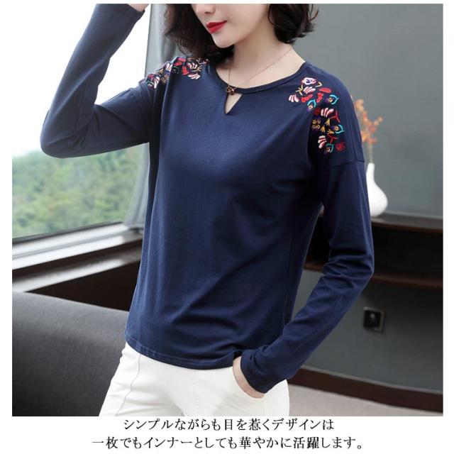 レディース トップス カットソー 刺繍 ブラウス プルオーバー Tシャツ 長袖 ゆったり 春秋冬 トレーナー シャツ レディース ナチュラル シンプル きれいめ