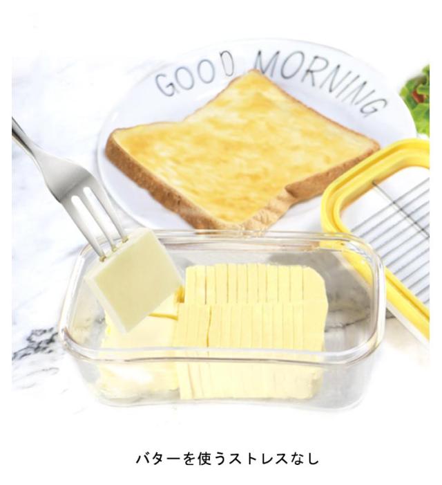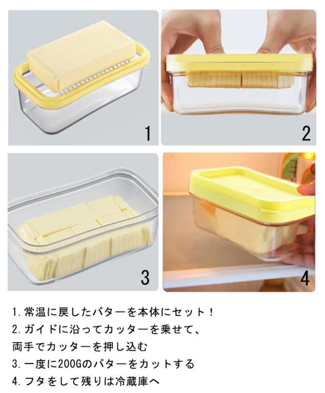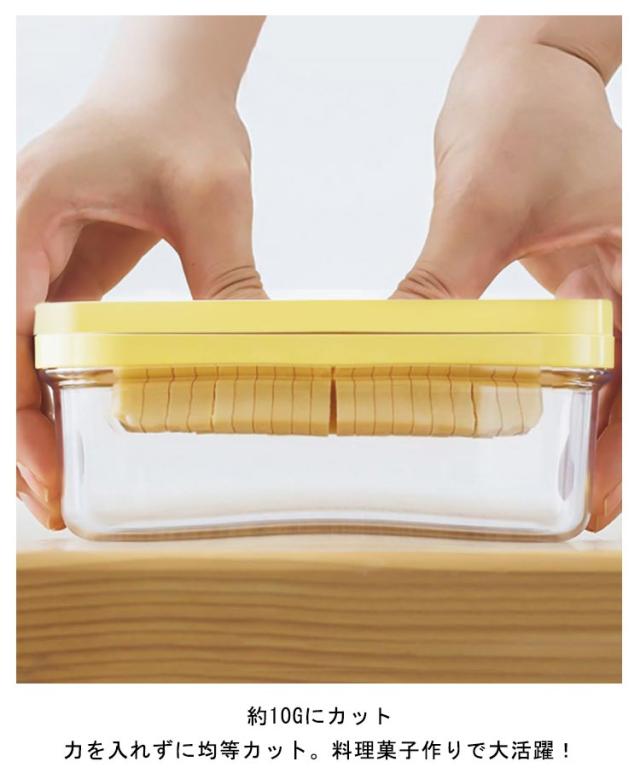 | バターを使うストレスなし 洗い物ゼロ カッター付きなのでできるので、手のべタべ包丁やまな板なしで簡単にカット。 約10gにカット 力を入れずに均等カッ卜。料理?菓子作りで大活躍! | |
