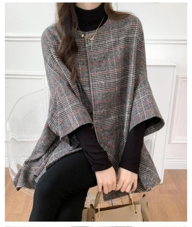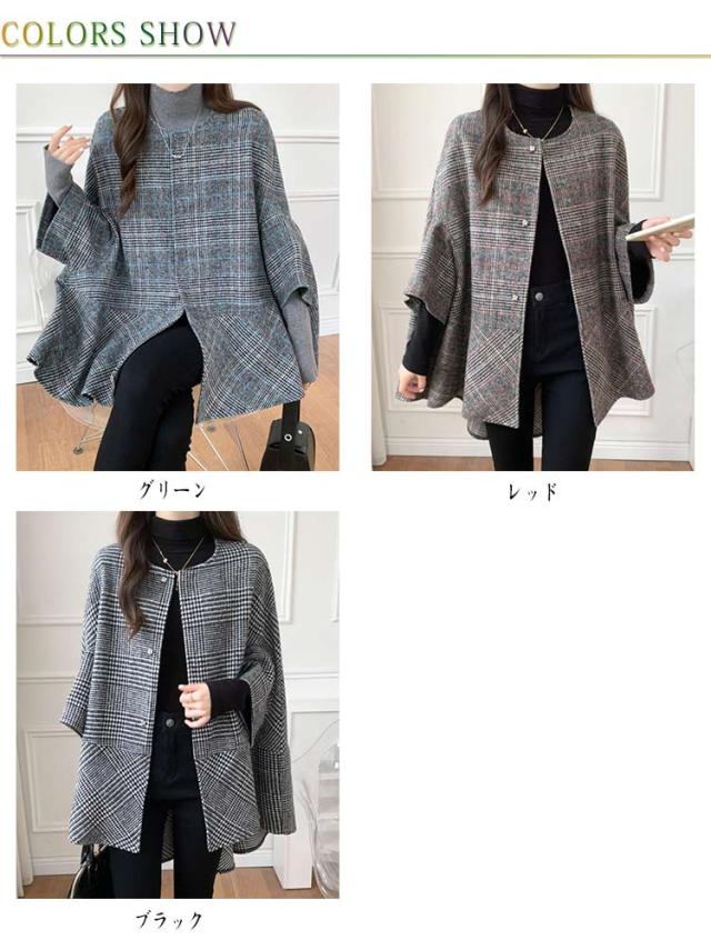 大きいサイズ レディース チェスターコート ポンチョ 秋 コート ショートコート チェック柄 アウター ジレ マント ケープ チェスターコート ジャケット こなれ感 トレンチコート コート ゆったり ショート丈 ポンチョコート 前開き 羽織り ゆったり 気質 大人 20代 30代 40代