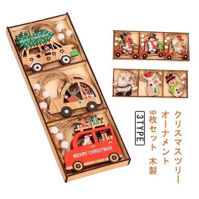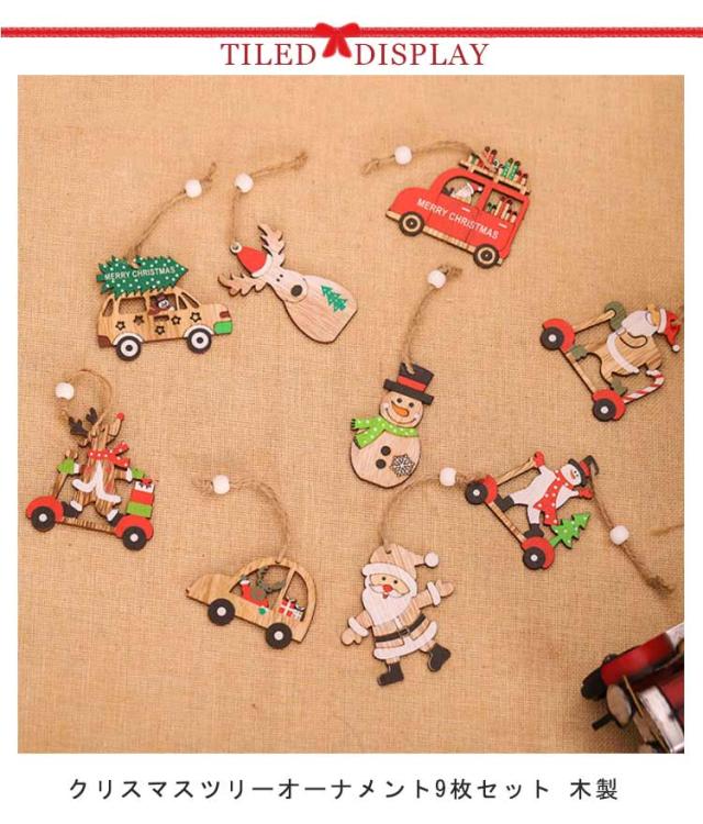 飾り トナカイ 9個セット クリスマス プレゼント 玄関 ド クリスマスツリー 飾り付け クリスマス 木製 雪だるま 車 6種類 デコレーション オーナメント 9個セット 2023 庭 置物 装飾 クリスマス 季節用品 かわいい 子供 おもちゃ Christmas ornament Xmas tree