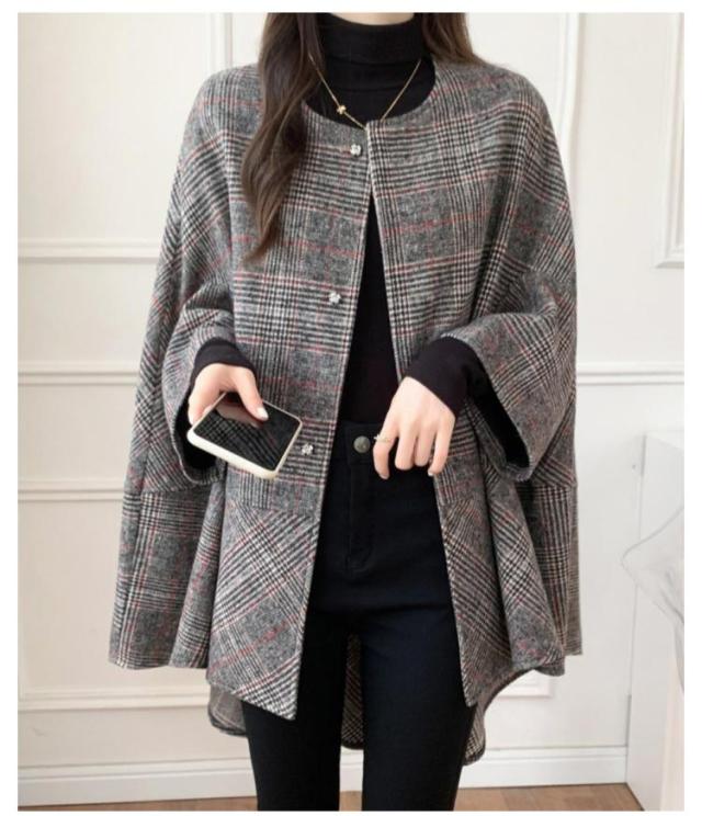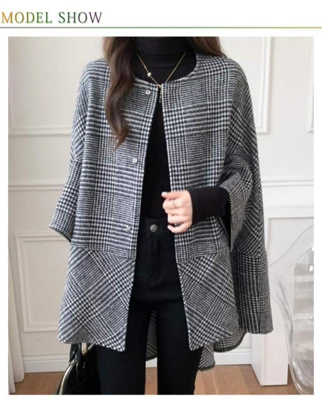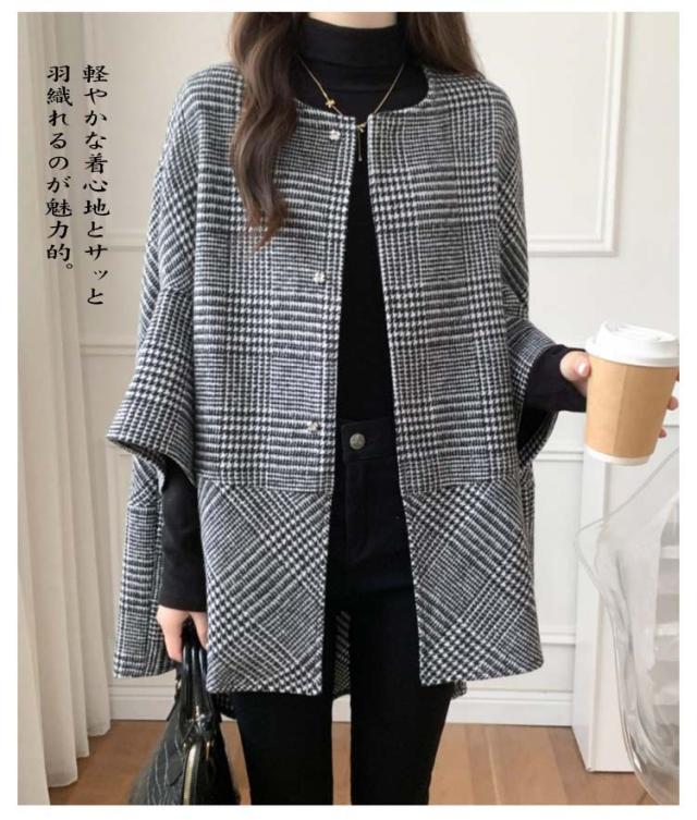 チェック柄 秋 コート ショートコート ケープ ポンチョ トレンチコート ジレ ジャケット レディース マント 冬 コート ポンチョコート こなれ感 アウター 気質 ゆったり ショート丈 チェスターコート 前開き 羽織り ゆったり 大きいサイズ 大人 20代 30代 40代