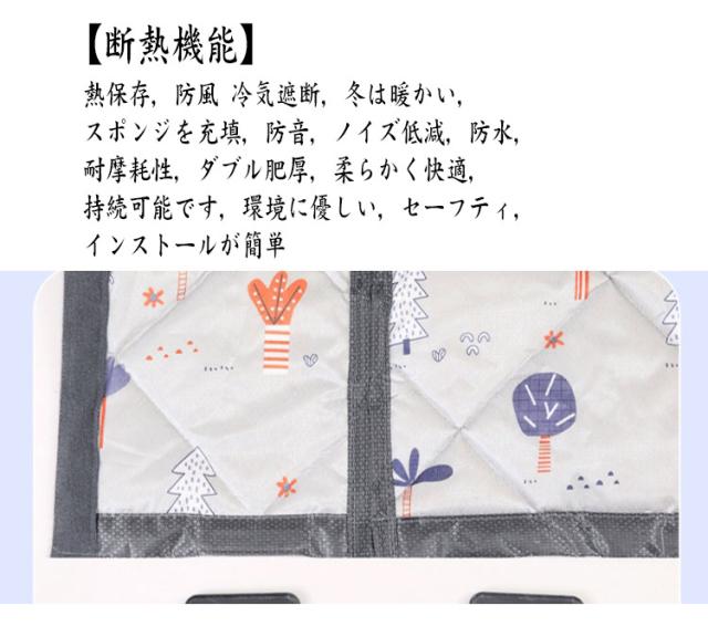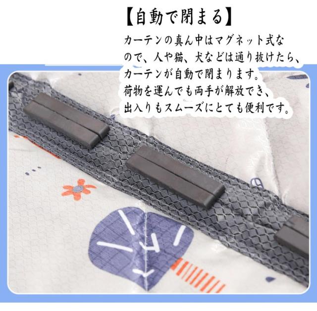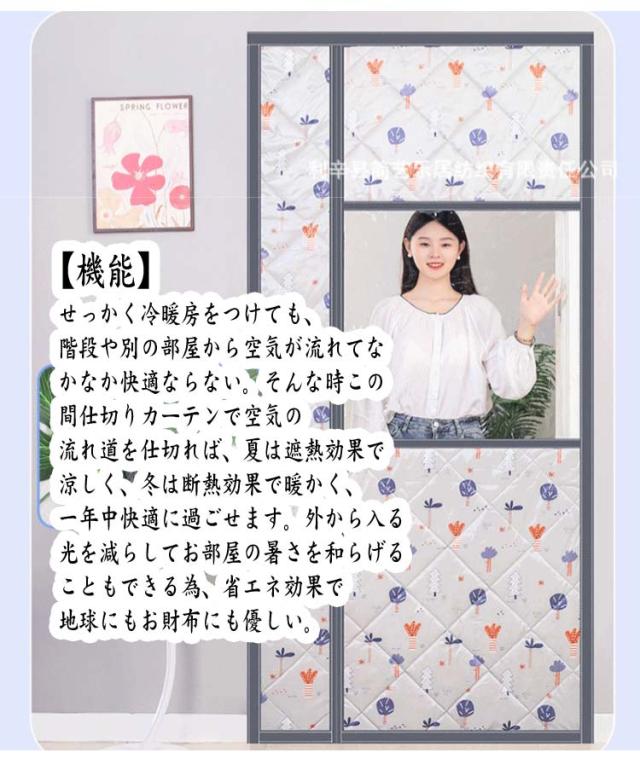 | 【幅80/85/90/95cm】 窓付き&窓なしの2タイプ ●【機能】せっかく冷暖房をつけても、階段や別の部屋から空気が流れてなかなか快適ならない。そんな時この間仕切りカーテンで空気の流れ道を仕切れば、夏は遮熱効果で涼しく、冬は断熱効果で暖かく、一年中快適に過ごせます。外から入る光を減らしてお部屋の暑さを和らげることもできる為、省エネ効果で地球にもお財布にも優しい。 ●【簡単取付・張り替えOK】玄関、ドア、開き戸、勝手口やベランダなど色々な場所に取り付け可能!面倒な工事が不要、3stepだけで、女性の方でも簡単に操作できます。 ●【自動で閉まる】カーテンの真ん中はマグネット式なので、人や猫、犬などは通り抜けたら、カーテンが自動で閉まります。荷物を運んでも両手が解放でき、出入りもスムーズにとても便利です。 ●【断熱機能】熱保存, 防風 冷気遮断, 冬は暖かい, スポンジを充填, 防音, ノイズ低減, 防水, 耐摩耗性, ダブル肥厚, 柔らかく快適, 持続可能です, 環境に優しい, セーフティ, インストールが簡単 ●【幅広い用途】冬は暖かく、夏は涼しく。エアコンルーム、寝室、子供部屋、ベランダ、キッチン、玄関ドア、玄関、裏口などに最適です。 ●出入り楽々・残り跡なし:強いマグネットで両手を上げず自動開閉、ワンちゃんや猫ちゃんまで出入りが楽々に。また、剥がしても残り物はなく、賃貸住まいのお客様にもオススメ! | |
