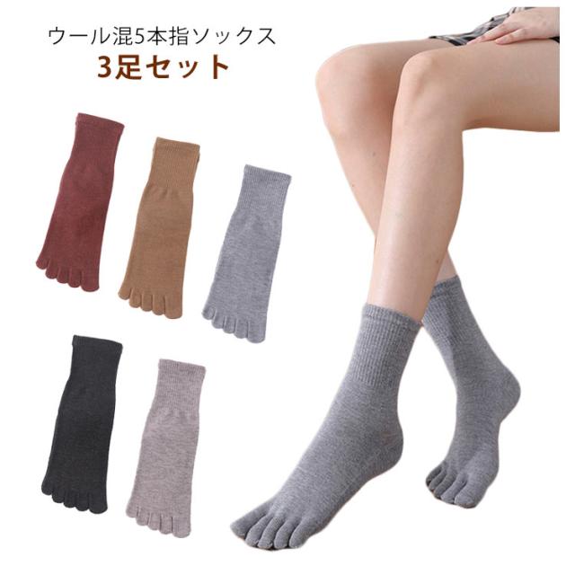 保温 レディース 無地 【3足セット】 通学 五分指靴下 くつした ウール混 5本指ソックス クルー丈 冷え取り靴下 婦人 女性 防寒 通勤 ビジネス ウール靴下 蒸れにくい 暖かい 冷え 消臭 カジュアル