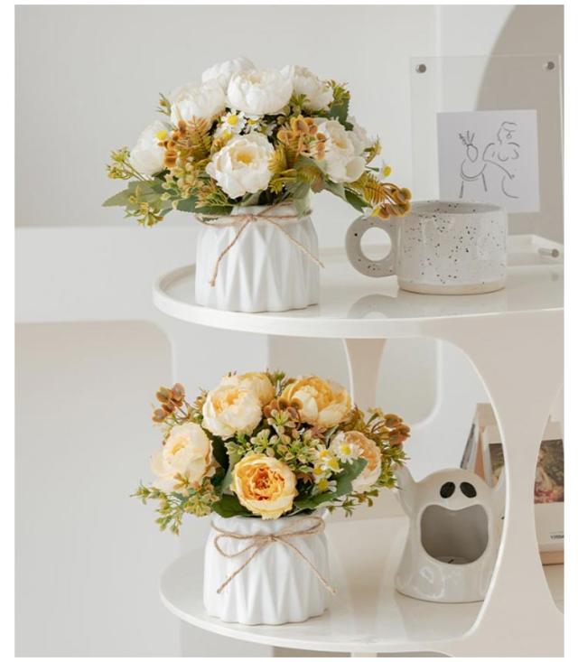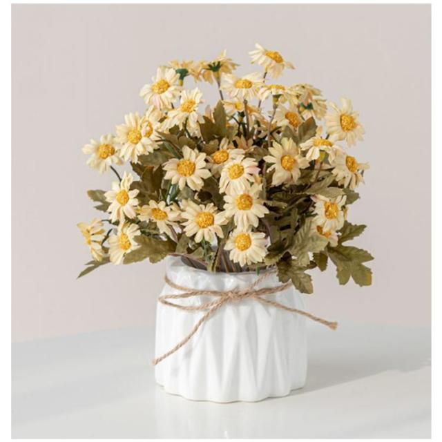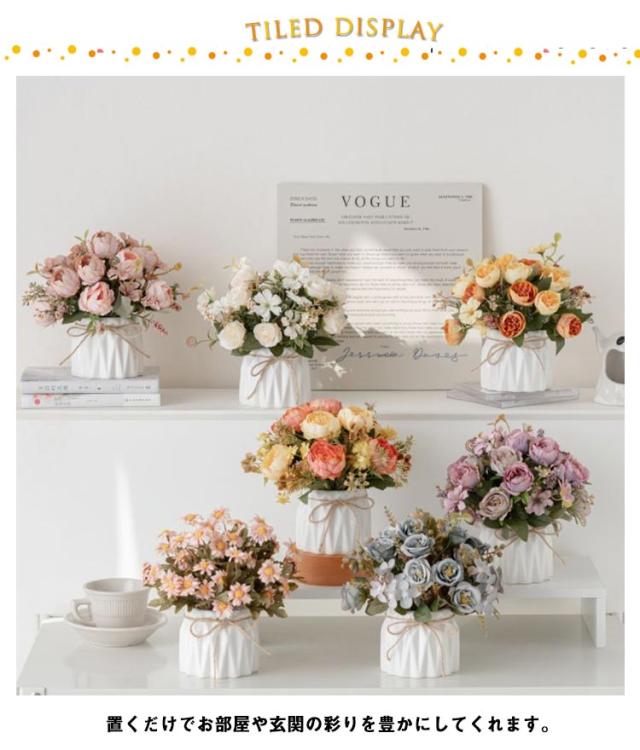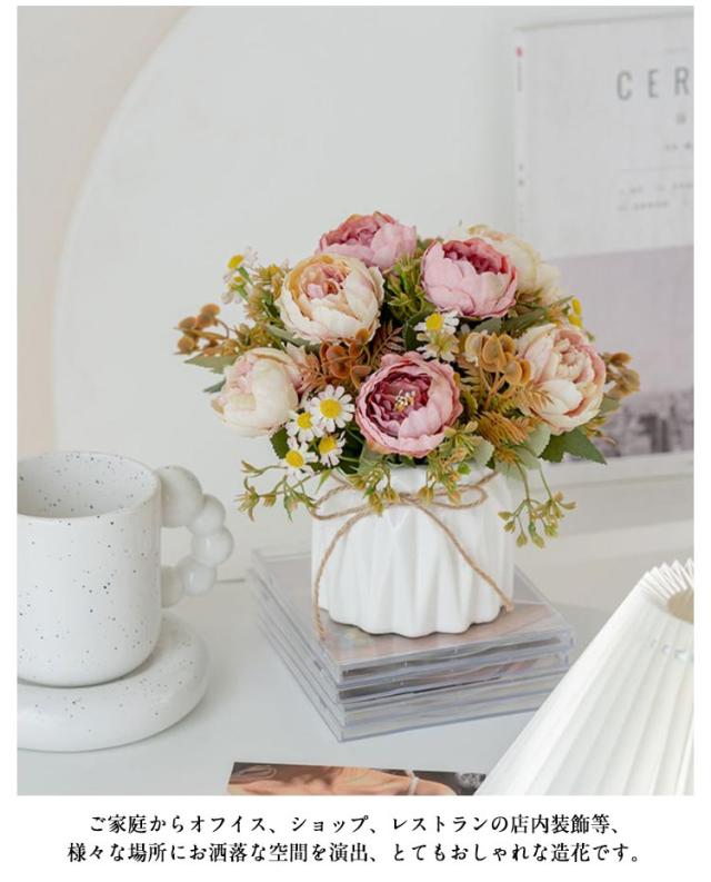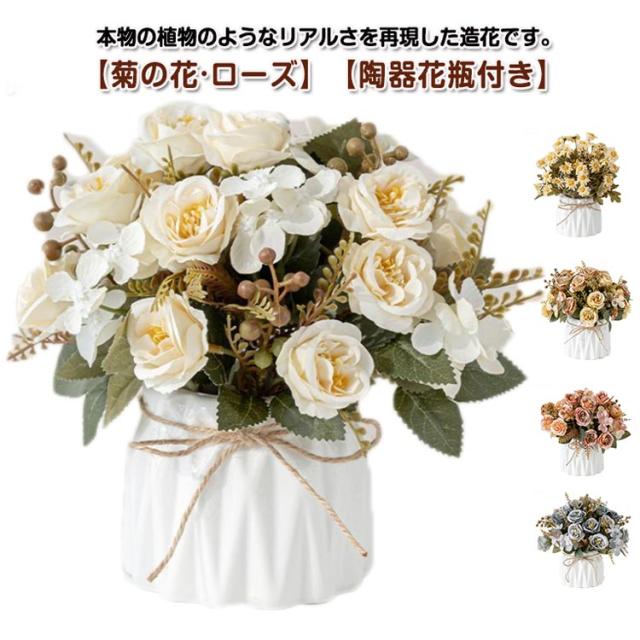| 本物の植物のようなリアルさを再現した造花です。【菊の花?ローズ】【陶器花瓶付き】 置くだけでお部屋や玄関の彩りを豊かにしてくれます。 フェイクの花なので、水、肥料やりや世話不要で、同時に害虫のつく心配が要りません。 ご家庭からオフイス、ショップ、レストランの店内装飾等、様々な場所にお洒落な空間を演出、とてもおしゃれな造花です。 ご注意: 直射日光の当たる場所や屋外で使用すると、色落ちや変色する恐れがありますので、十分ご注意ください。 イミテーションの花は手作業で繋ぎ合わされているので、ちょっとした落花落葉は避けられないので、予めご了承ください。 最初は少し匂いがするかもしれないので、1日風通しの良い場所に置くのがおすすめです。 | |