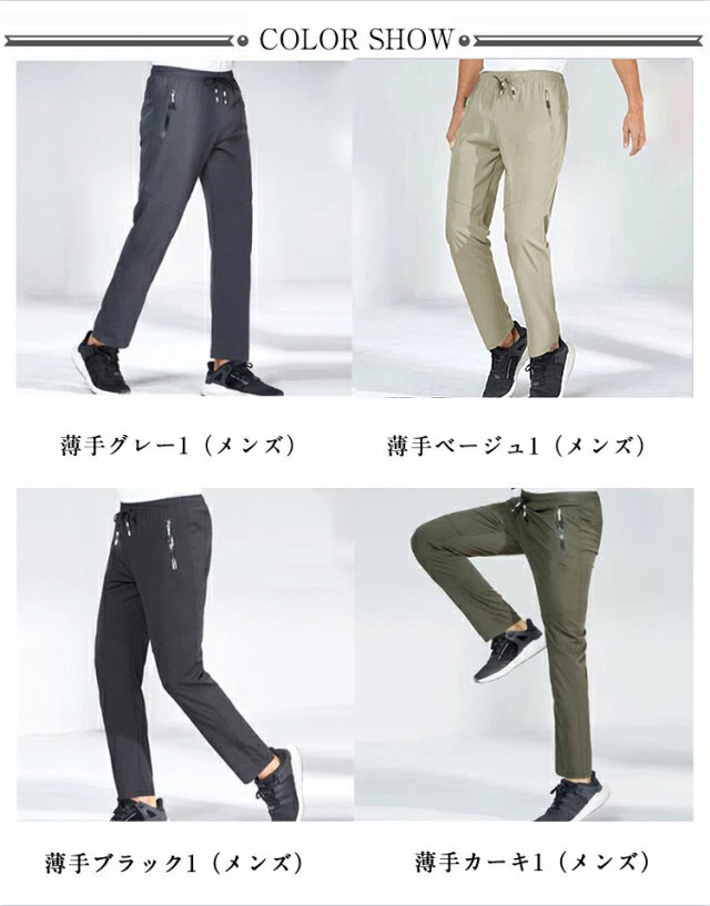| 速乾性に優れた!薄手のスポーツパンツです。 ストレッチ性で、窮屈さが軽減され快適に使用できます。 撥水性の生地を使用し、ウエスト部分はゴムで脱着がやすいです。 前面両側のポケットにファスナーがあって、小物紛失防止になります。 ウォーキング、ゴルフ、釣りなどなアウトドアシーンだけでなく、カジュアルのタウン用にもオススメです。 | |
