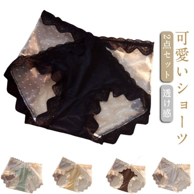 送料無料 レース ショーツ 可愛い レディース スタンダードショーツ 2枚セット シームレス レース 透け感 女の子 女性用 インナー パンティ 下着 パンツ アンダーウェア コットン ストレッチ 通気性 履きやすい おしゃれ セクシー 肌着 大人