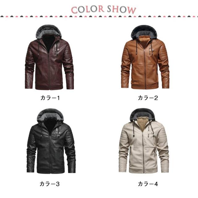 フード付き 裏起毛 ライダースジャケット レザージャケット 秋冬 革ジャン 革ジャン レザージャケット バイクジャケット フェイクレザー 大きいサイズ 皮ジャン PUレザー かっこいい おしゃれ L XL 2XL 3XL 4XL