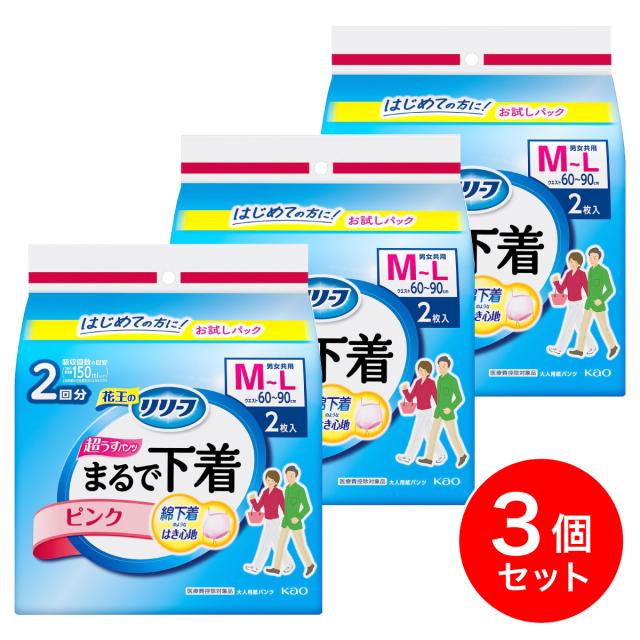 【まとめ買い】花王 リリーフ パンツタイプ まるで下着 2回分 M 2枚×3個セット ピンク 超うす型 大人用 紙おむつ 紙パンツ