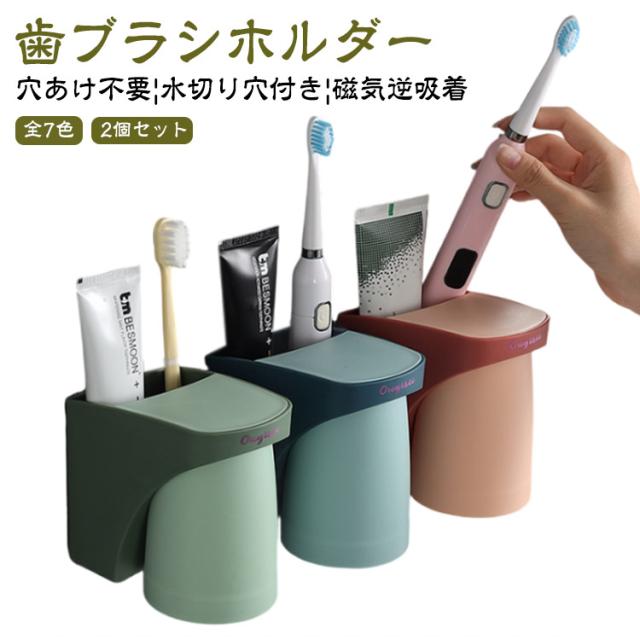 2個セット 歯ブラシホルダー 磁気吸着 1個入りタイプ 吊り下げ 壁掛け 吸盤 マグネット 内蔵 歯ブラシスタンド コップスタンド 歯ブラシたて 歯磨きコップ はぶらしたて 洗面所 収納 吸盤カップ スタンド 水垢防止 防塵衛生 白 ホワイト グレー おしゃれ 北欧