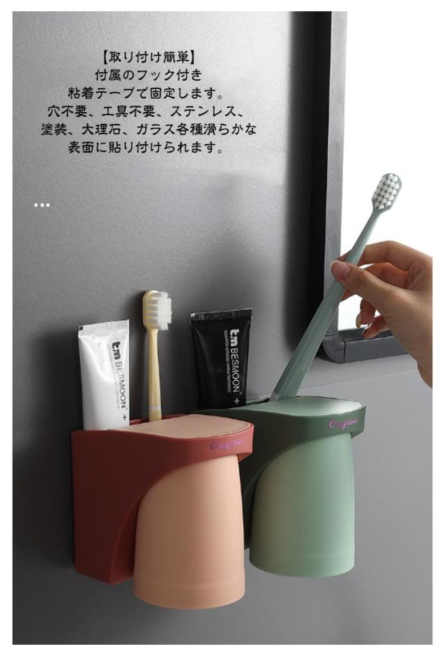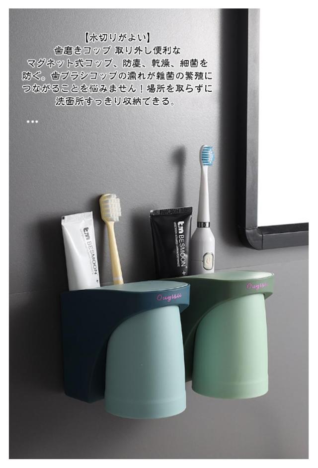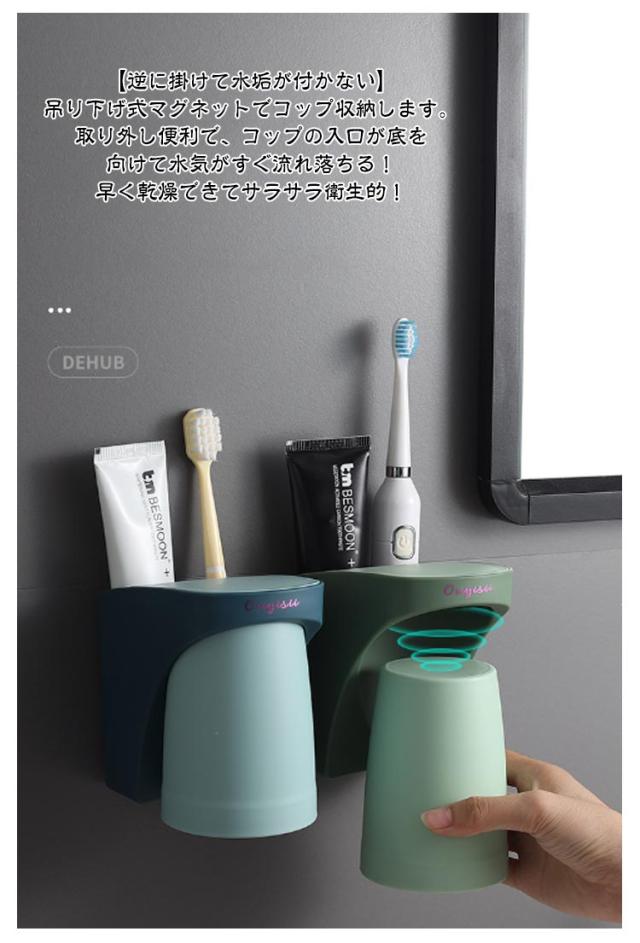 | 穴あけ不要|水切り穴付き|磁気逆吸着 歯ブラシホルダー 全7色 2個セット 歯ブラシやタンブラー、シェーバーなどの歯磨きグッズをまとめて収納できる歯ブラシスタンドです。 ★【耐久性が高い素材を採用】 良質PP素材を採用し、作りはしっかりしていて軽く環境に優しく異臭がなく、安全に使用できます。 耐久性が高いプラスチックでコップの中の表面にコーティング処理がされていて掛ける時早く水気が流れ落ちる。 ★【取り付け簡単】 付属のフック付き粘着テープで固定します。 穴不要、工具不要、ステンレス、塗装、大理石、ガラス各種滑らかな表面に貼り付けられます。 ★【逆に掛けて水垢が付かない】 吊り下げ式マグネットでコップ収納します。取り外し便利で、コップの入口が底を向けて水気がすぐ流れ落ちる!早く乾燥できてサラサラ衛生的! 底面にはスリットが入っているので水はけが良く、衛生的にお使いいただけます。 ★【水切りがよい】 歯磨きコップ 取り外し便利なマグネット式コップ、防塵、乾燥、細菌を防ぐ。歯ブラシコップの濡れが雑菌の繁殖につながることを悩みません!場所を取らずに洗面所すっきり収納できる。 取り付ける手順詳細 1個入りタイプ: 1.雑巾で壁をきれいにし、壁をきれいに保つ 2.粘着保護フィルムをはがします。 3.矢印の方向に合わせて上に貼り付けてください。 4.余分な空気を取り除き、取り付けた 24時間後に使用してください。 *ご注意 ■磁性部の保護膜に注意し、剥がさないでください。 | |