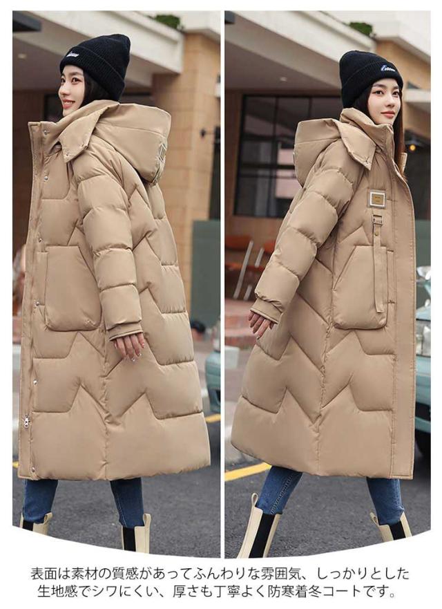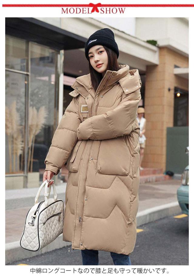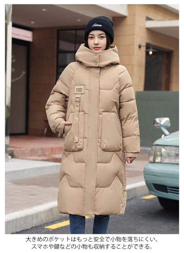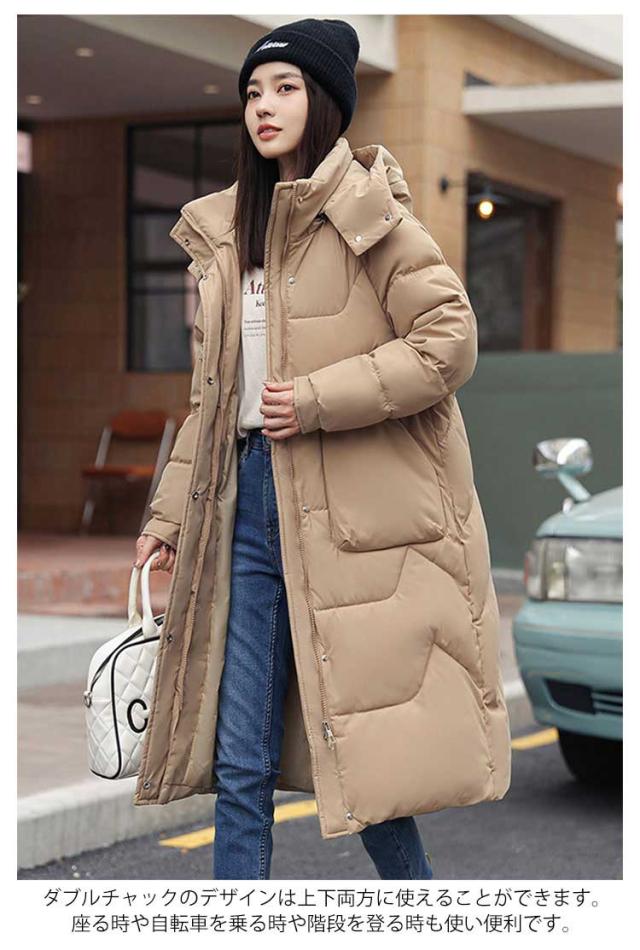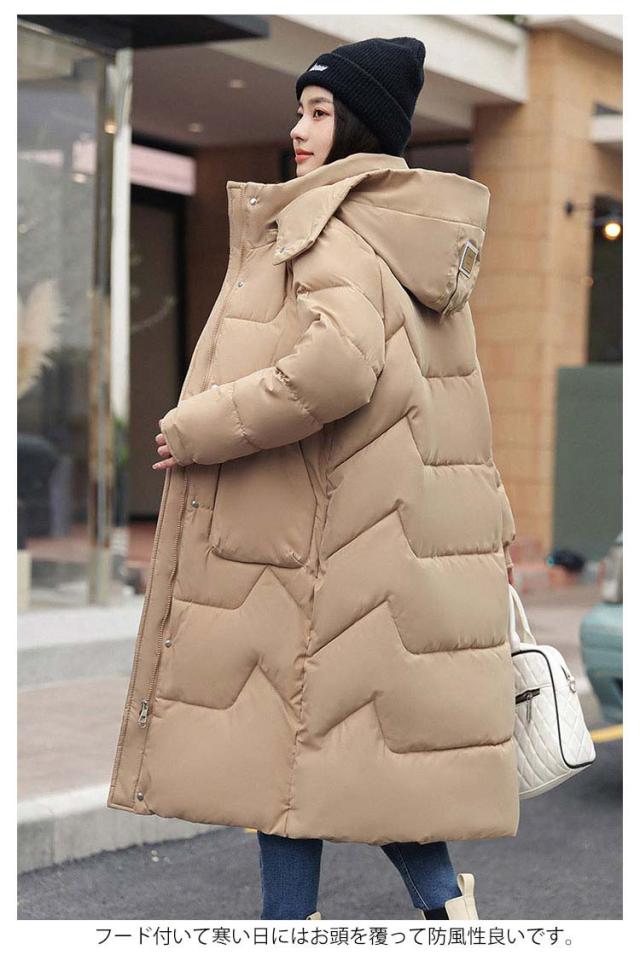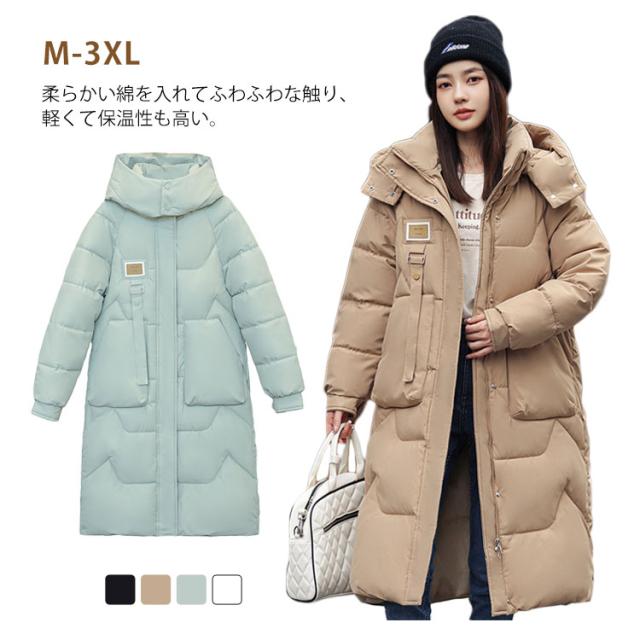 M-3XL ロングコート レディース 膝丈 ベンチコート 冬 大きいサイズ フード付き 中綿コート ダウンジャケット ダウンコート アウター ジャンパー 綿入り ダウン風 ポケット ハイネック 着痩せ 無地 冬服 軽量 防寒 厚手 アウトドア 通勤