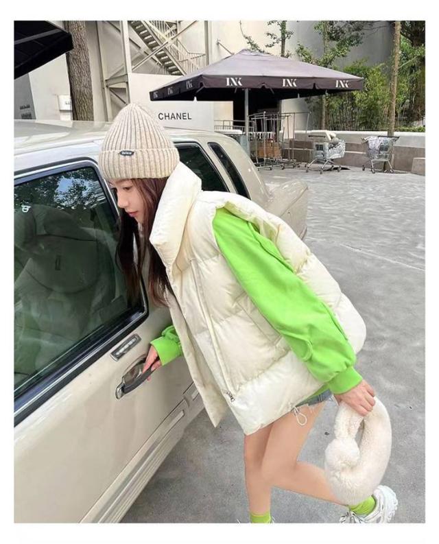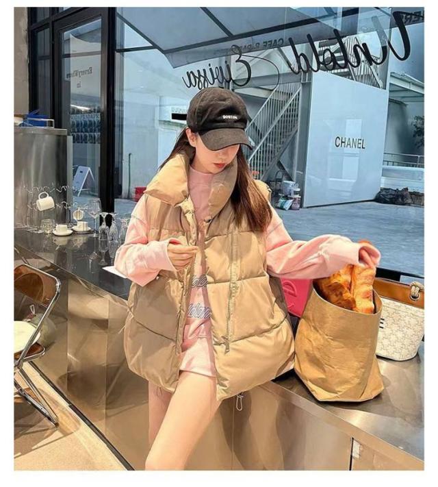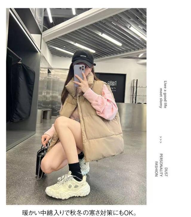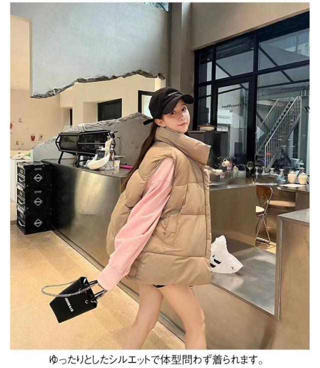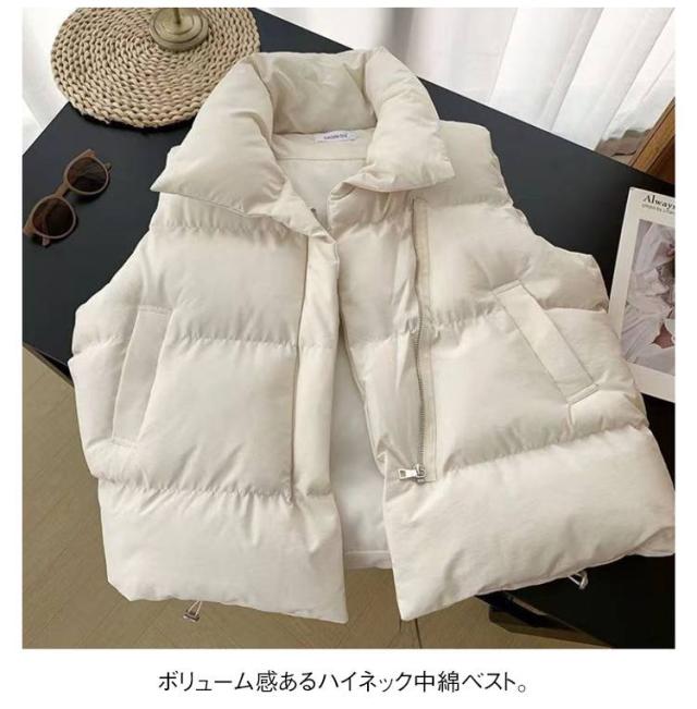 中綿ベスト レディース 韓国風 ボリュームネック ベスト ジャケット ハイネック アウター 秋冬 冬 防寒 かわいい フードなし ジャケット 大きサイズ おしゃれ 20代 30代 40代 白 黒 茶色 送料無料