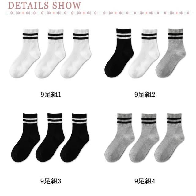 靴下 送料無料 9足組 ジュニア メッシュ 黒 くつ下 ソックス 丈夫 スクールソックス 送料無料 男の子 小学生 キッズ 二本ラインソックス ガールズ ボーイズ 白 綿混 オシャレ 洗い替え 入園 入学 入園グッズ 入園セット 入学セット 春