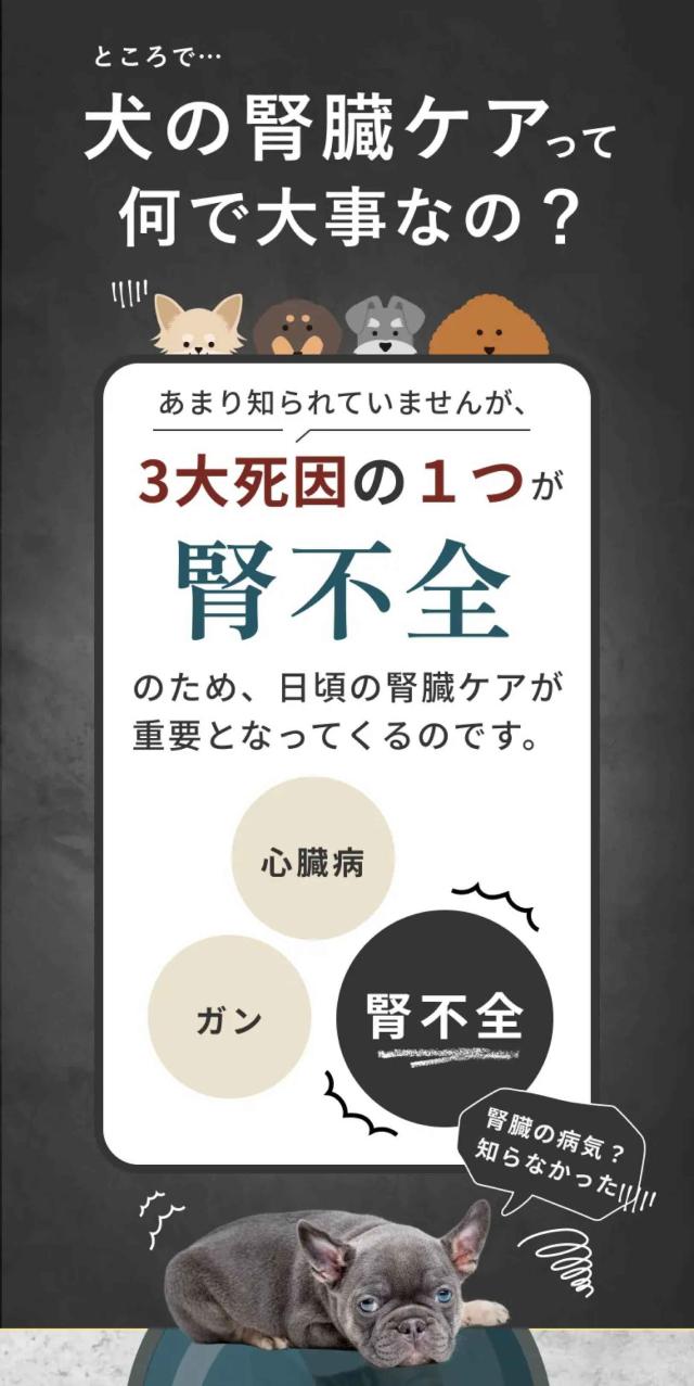 あまり知られていませんが、3大死因の1つが腎不全のため、日頃の腎臓ケアが重要となってくるのです。
