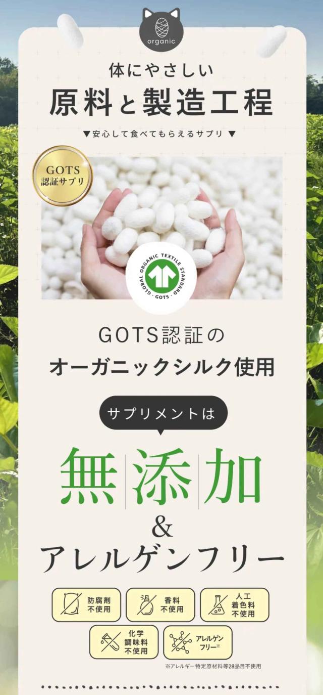 GOTS認証のオーガニックシルク使用