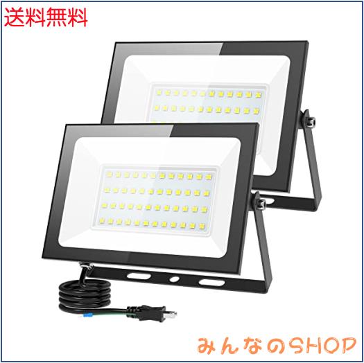 KIWEN【超薄型・2個セット】 LED投光器 80W 10000LM 昼光色 ledライト 屋外 IP66 防水 豪雨対応 作業灯 led 100V対応 アース付きプラグ P