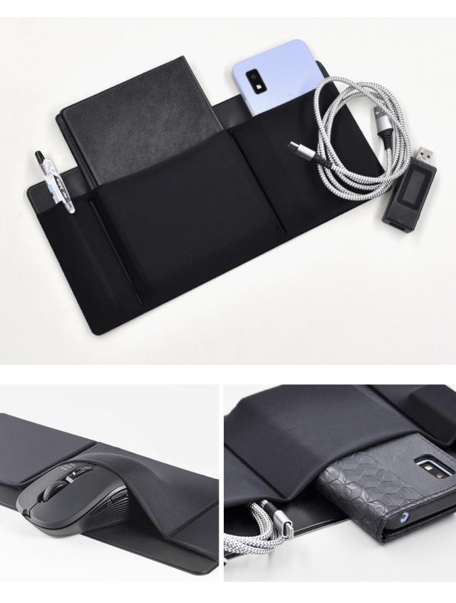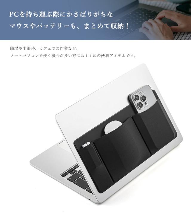 ガジェット ポーチ 薄型 PC ノートパソコン タブレット 貼り付け スマホホルダー 粘着テープ マウス ケーブル 収納 ポケット 小物入れ